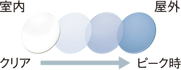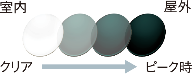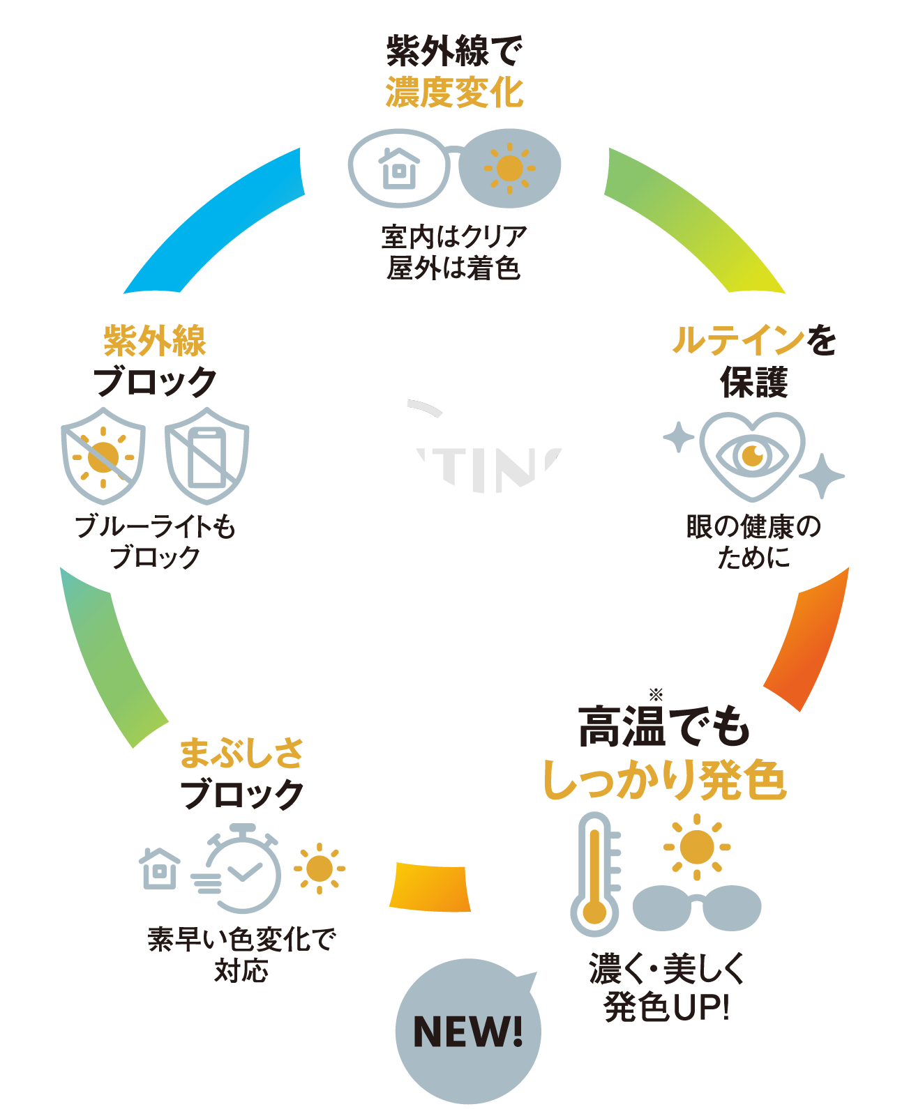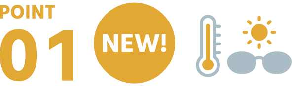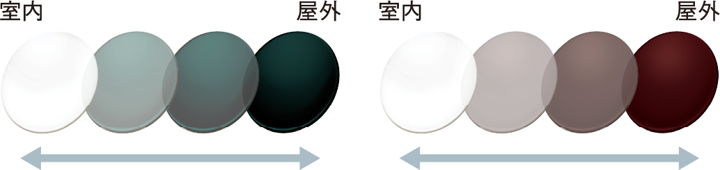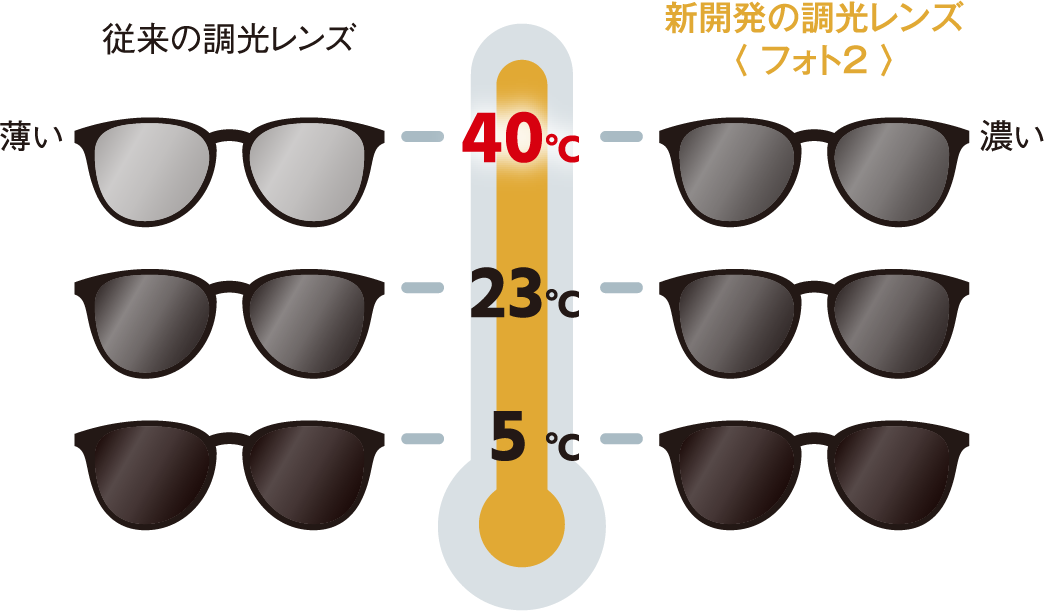高温ではカラー濃度が濃く変化しにくい、従来の調光レンズの弱点を解決した、高温でも濃度が濃く変化するワンランク上の調光レンズです。