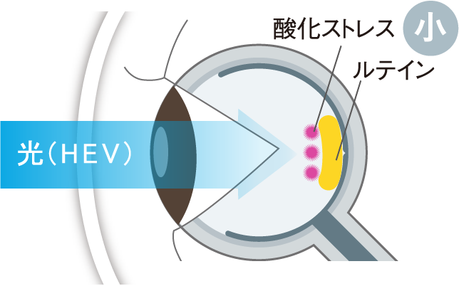 光(HEV)をブロックすることで酸化ストレスを低減し、ルテインを保護します。