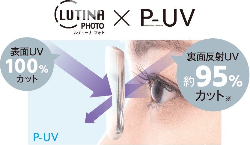 レンズ表面だけでなく、レンズ裏面で反射してはね返って、眼に入る紫外線も大幅にブロックし、快適で健やかな毎日をつくります。